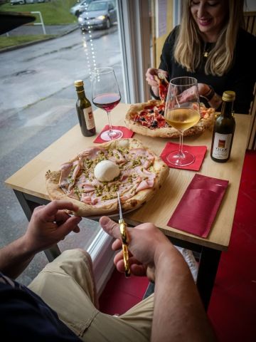 Naše pizzerie možná není největší, ale je přesně taková, jakou jsme si vysnili – jako by Neapoli z oka vypadla. Prim tu hraje samozřejmě pec, máme pro vás 3 stolky, lednici plnou pitiva všech druhů a italský hity v reprácích. Navíc máme parádní italský dvorek ve vnitrobloku. je tu chládek, dostatek stolů a itaslká pohodička. Tak se stavte – pizzu dostanete přímo z pece. A to má něco do sebe. Najdete nás u světel naproti kinu Sokol na adrese Na Stráni 613.