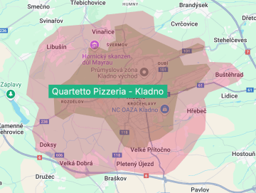 Až k vaším dveřím. Vozíme celé Kladno a okolí. Snažíme se co nejrychleji. Máte možnost předobjednávky dopředu, což vřele doporučujeme.